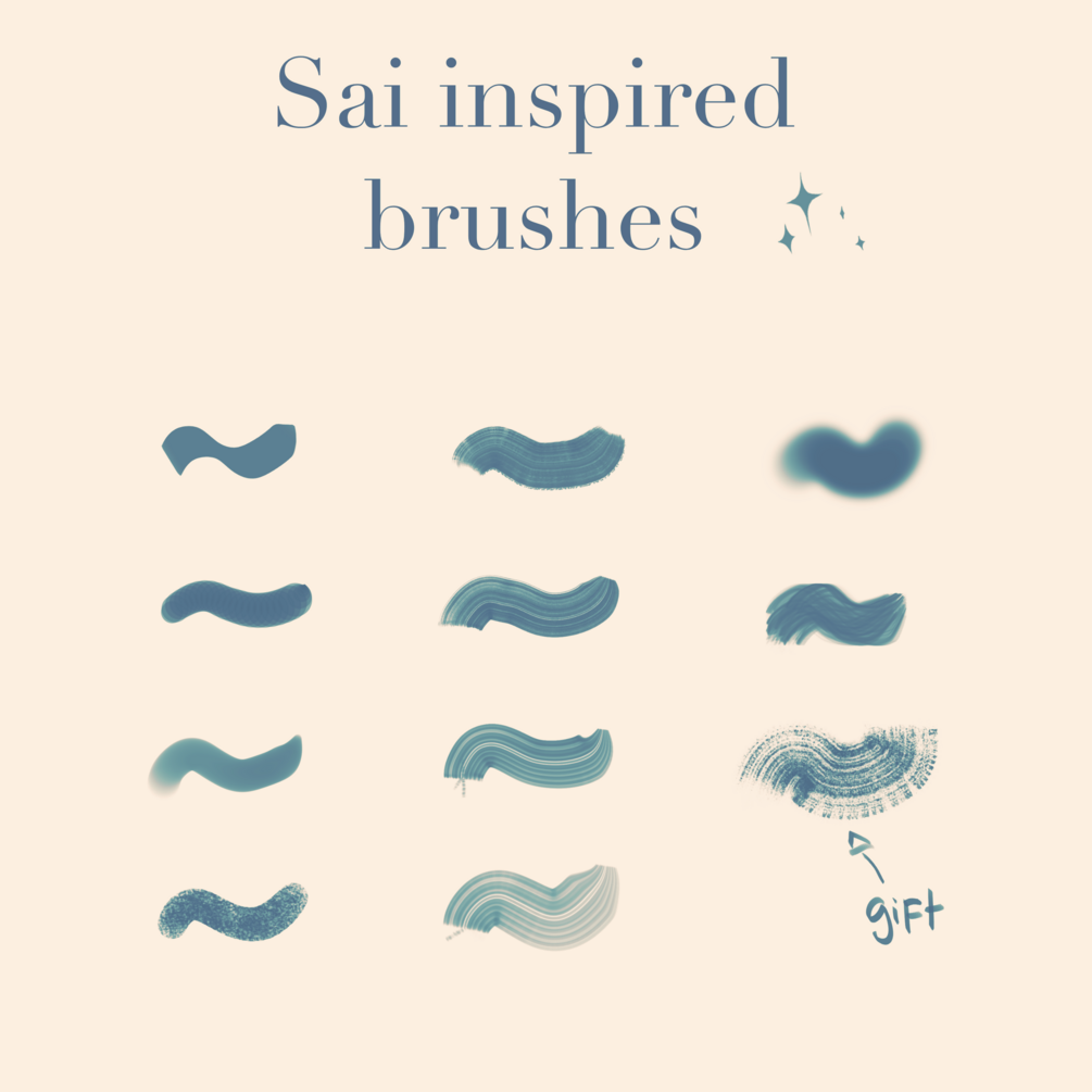 10 brushes + 1 gift (brush) inspired in Paint tool sai brushes I used to use 💖.